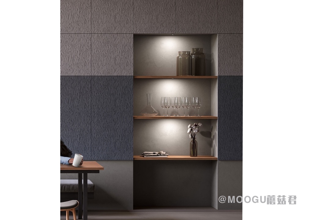 MOOGU莫古面板旨在为所有空间提供创新而自然的外观。为了赋予颜色多样性,天然白色面板上涂上可持续的水性无重金属和低光泽的VOC涂料。